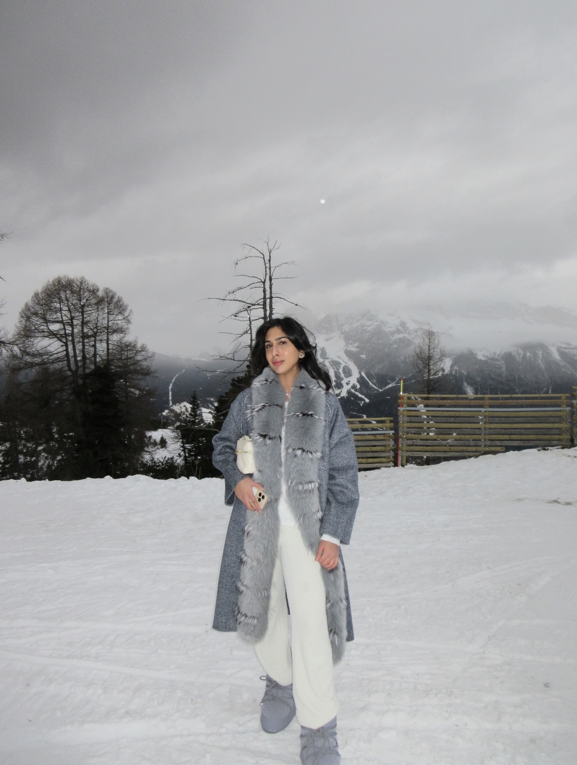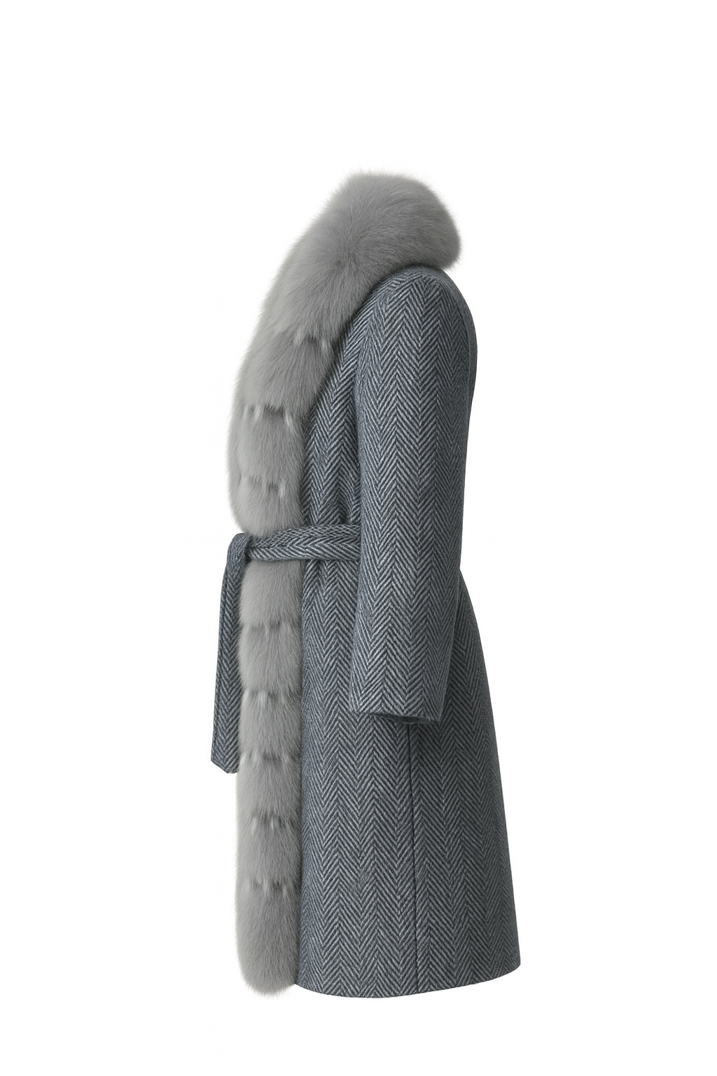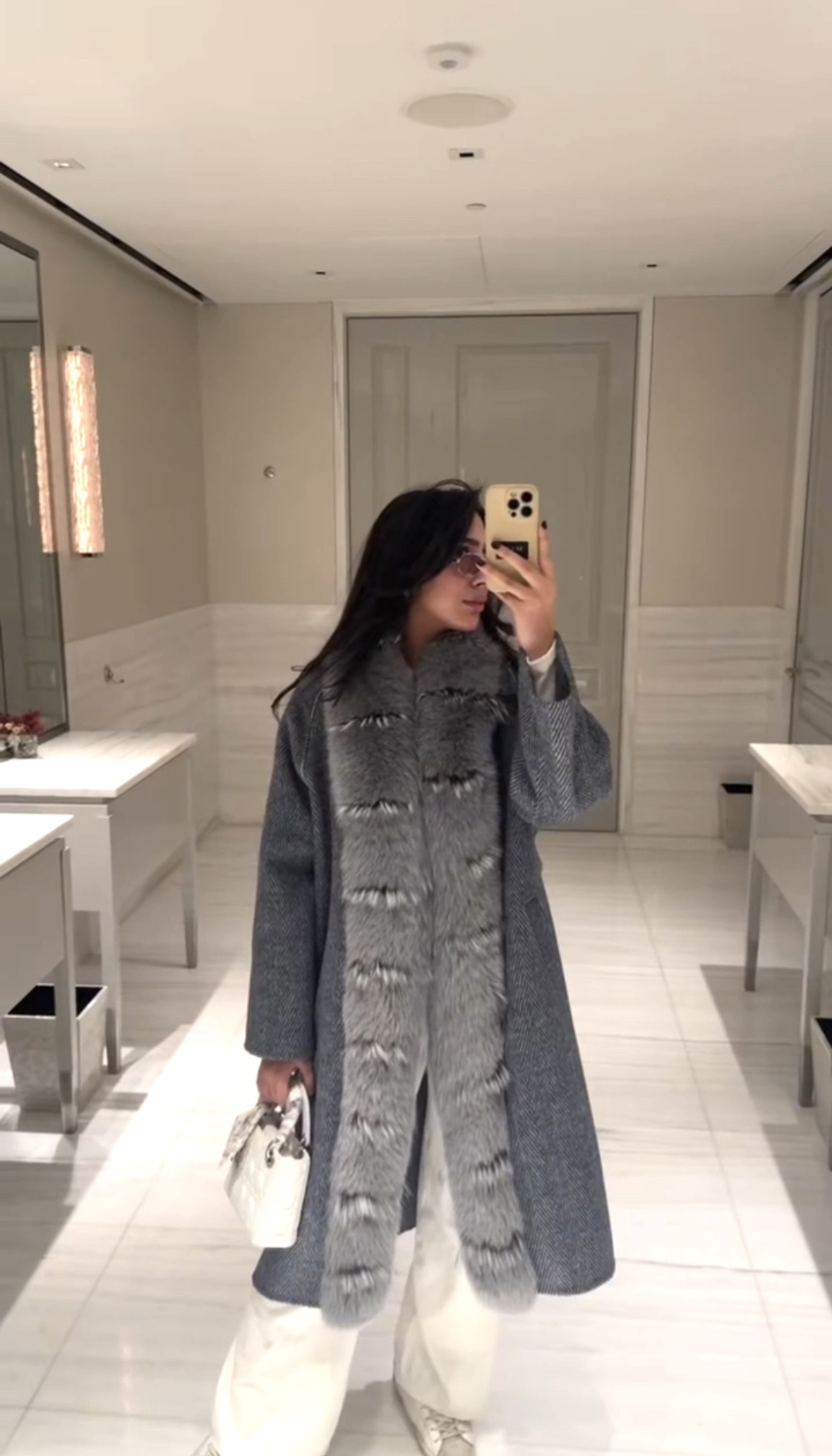 Effortlessly refined, The Khikhi Coat embodies the harmony between warmth and sophistication. Tailored from premium herringbone wool, it’s finished with a cascading panel of soft slate-grey fox fur — adding texture, depth, and quiet luxury.